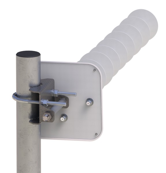 Крепление антенны позволяет крепить антенну на трубе диаметром 30–52мм, и изменять поляризацию антенны (V+H или X-Pol). Все элементы антенны защищены от коррозии полимерным и гальваническим покрытием.