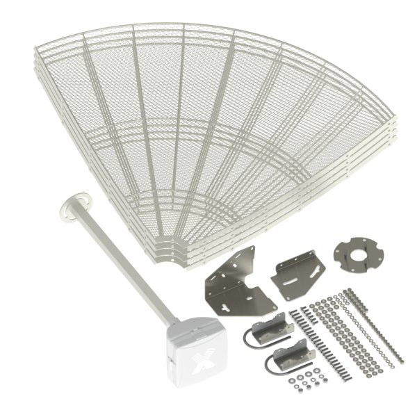 Для удобства транспортировки до места установки, антенна имеет разборную конструкцию: зеркало собирается из четырех сегментов. Для увеличения корозостойкости в конструкции антенны используется алюминий, оцинкованная сталь и финишное порошково-полимерное покрытие.