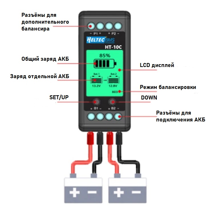 Эквалайзер (балансир) Heltec HT-10C используется для Li-ion, Lifepo4 и Lead-acid (свинцово-кислотных) аккумуляторов.