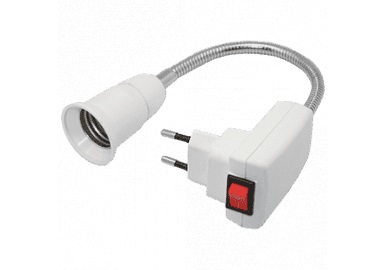 Переходник вилка-Е27 гибкий 300мм с выключателем, белый,