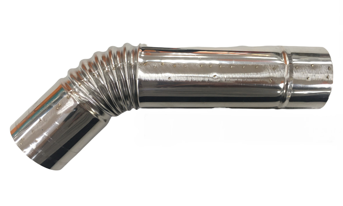 Труба угловая для дымохода, аналогичная тем, которыми комплектуются печек печка Рыбака PS10, Пошехонка малая и "Турист" 15л.