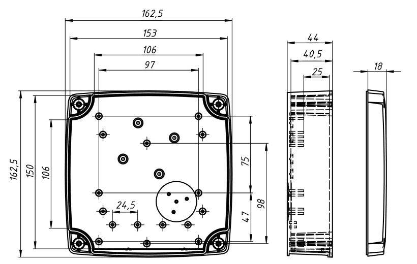 Герметичный бокс AX-BOX 150 x 150 x 60_IP67 от компании Антэкс предназначен для защиты электронного оборудования от пыли и влаги. Имеет защитную нишу, в которую можно установить гермовводы, коаксиальные и другие разъемы. Снабжен диэлектрическими стойками для удобного размещения электронных устройств (модемов, роутеров), антенн, монтажных пластин, сигнальных устройств и т.д.