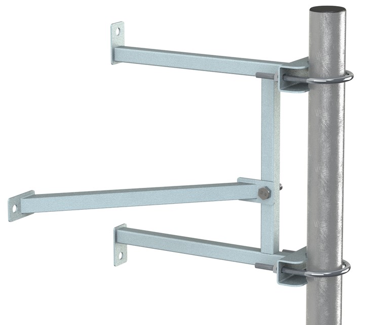Кронштейн KSUM-220 предназначен для крепления антенных мачт к стенам зданий и другим вертикальным строительным конструкциям. Данный кронштейн незаменим в случае невозможности установить мачту на крыше здания.