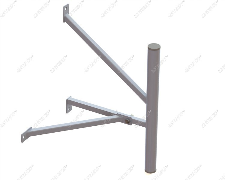Усиленный стеновой кронштейн KSU-240/470 предназначен для установки тяжелых выносных антенн и иного радиооборудования на стены зданий. Треножное крепление придает опоре большую жесткость. Удлиненная трубостойка подходит для монтажа габаритных антенн, например, спутниковых тарелок.