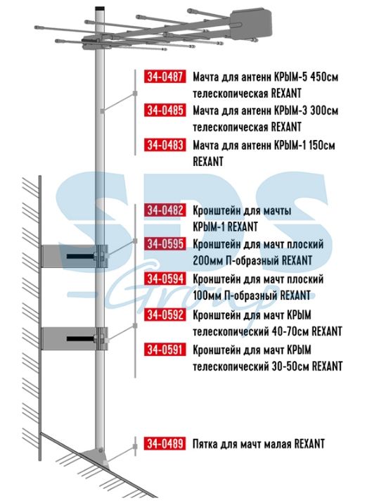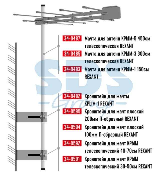 Кронштейн для мачт КРЫМ телескопический 30-50см Rexant