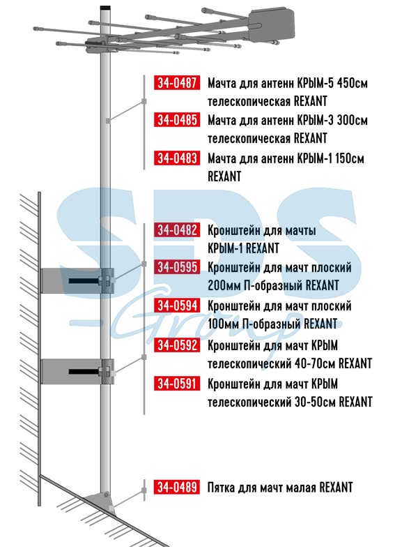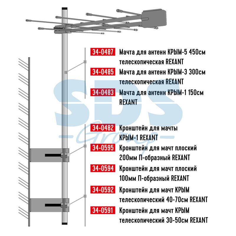 Кронштейн для мачт КРЫМ телескопический 40-70см Rexant