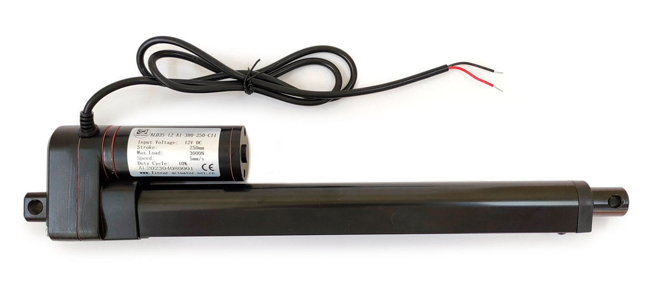 Линейный привод (актуатор) 12 В, длина хода 300 мм., 5 мм/с, до 300 кг (3000N), черный