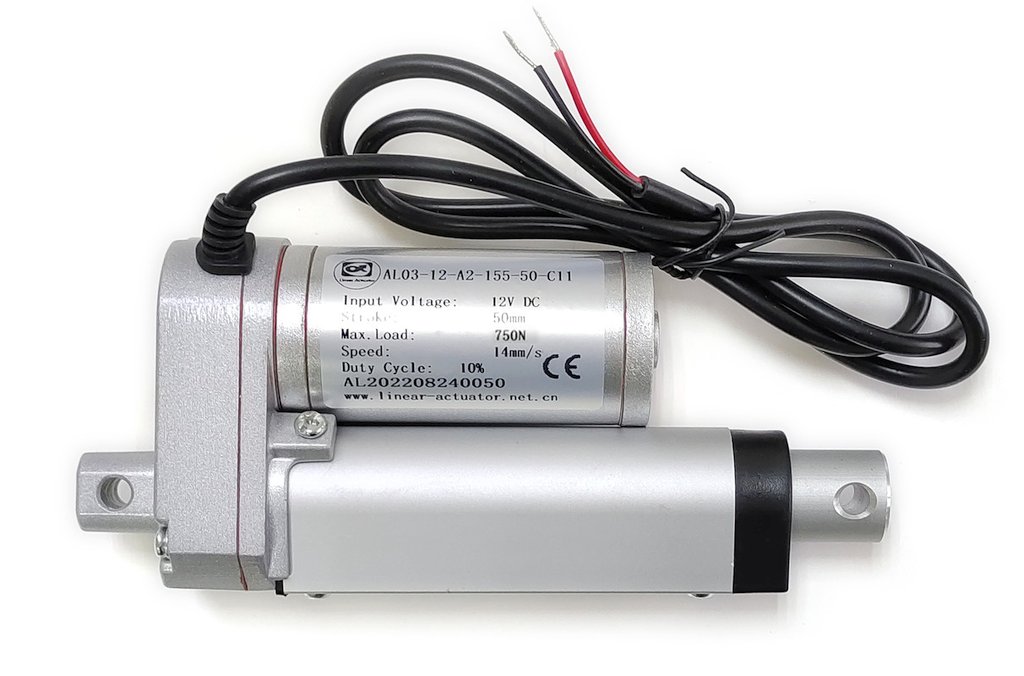 Линейный привод (актуатор) 12 В, длина хода 50 мм., 10 мм/с, до 75 кг (750N)