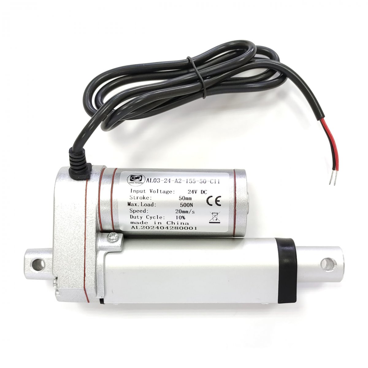 Линейный привод (актуатор) 24 В, длина хода 50 мм., 20 мм/с, нагрузка до 50 кг (500N)