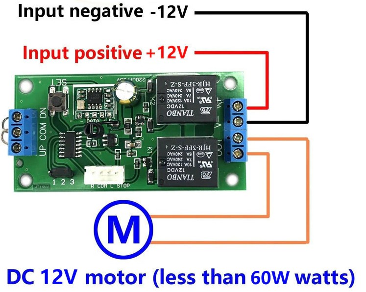 Набор уже настроен. Необходимо только подключить питание и мотор. Кнопки вверх, вниз и стоп.