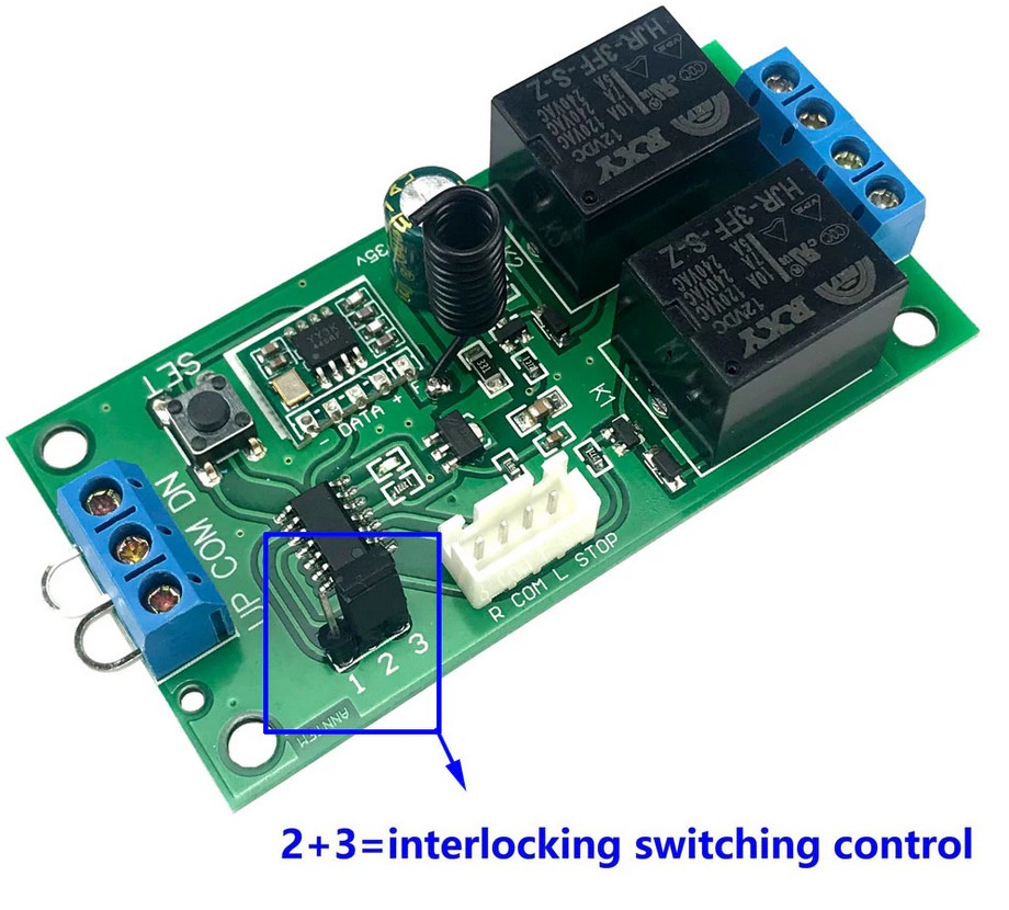 Переключатель направления вращения электромотора 12В, 2 пульта (V2)