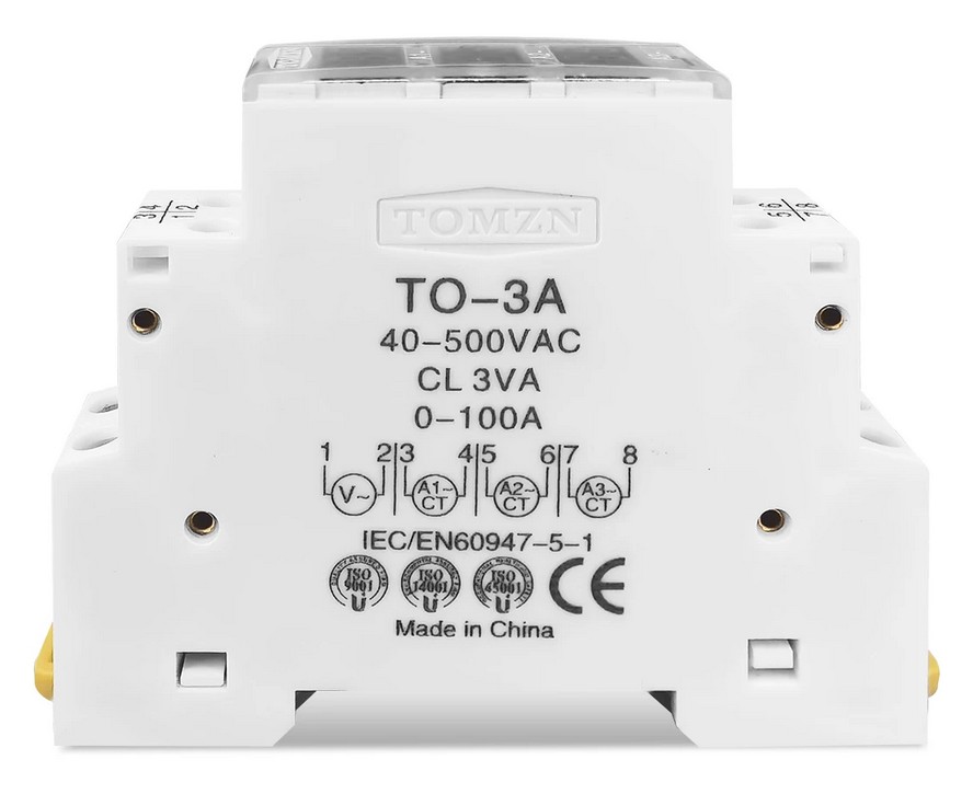 Цифровой амперметр (3-х фазный) на DIN-рейку TOMZN TO-3A, 0-100А, 40-500В AC Распродажа Хит продаж