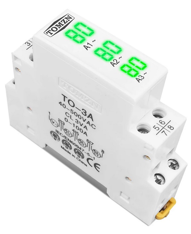 Цифровой амперметр (3-х фазный) на DIN-рейку TOMZN TO-3A, 0-100А, 40-500В AC, матовый Распродажа Хит продаж