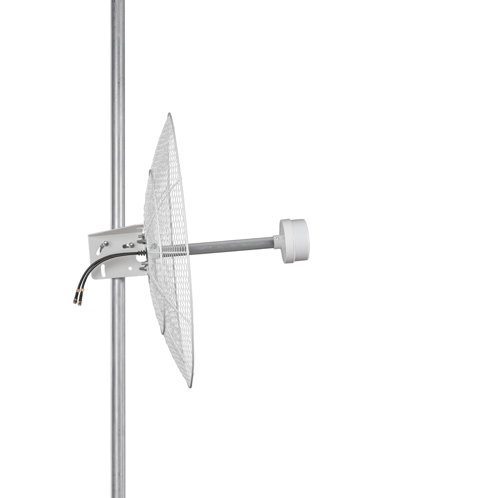 Параболическая широкополосная MIMO-антенна KNA21-1700/4200 предназначена для работы с 3G, 4G и 5G модемами, роутерами и другим оборудованием, работающим в частотном диапазоне 1700-4200 МГц. Поддерживает большинство современных диапазонов сотовой связи — работает в сетях 3G(UMTS2100), WiFi2400, 4G LTE (band 1, 3, 7, 38, 40), 5G NR(N77, N78).