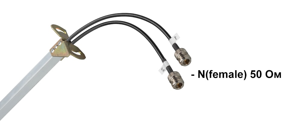 Облучатель антенны оснащен двумя кабелями RG-58 с крупными и надежными разъемами N-female.