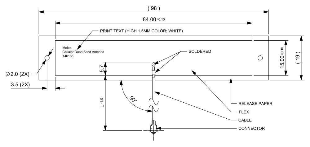 Крепится на двойную клейкую ленту к неэкранированной поверхности, подключается к устройству коротким коаксиальным кабелем с разъемом Uf.l на конце.