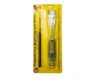 Автоматический открыватель форточки теплицы "Синьор Помидор" служит для проветривания тепличного помещения без участия человека. Когда температура внутреннего пространства повышается до +17-25°C шток амортизатора начинает выдвигаться и форточка приоткрывается. Полное открытие на +30°C. Когда температура опускается, шток возвращается в исходное положение и форточка закрывается. Чем выше температура, тем шире открывается форточка. Открывает форточку весом до 15 кг до 45см.