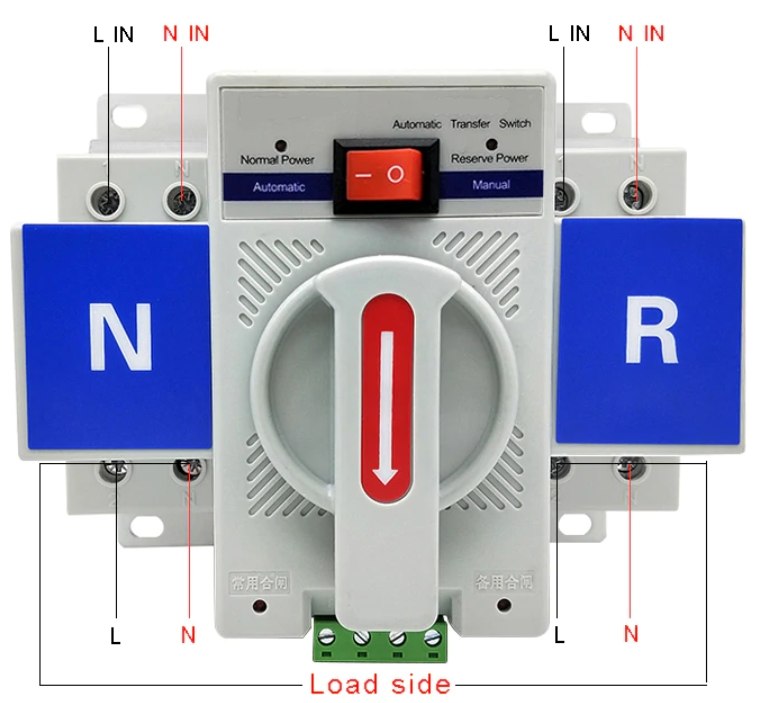 Двойной автоматический переключатель может автоматически переключиться на нормальный режим эксплуатации или резервное питание.При отключении электропитания на основной линии, устройство автоматически переключает нагрузку на резервную линию, а при возобновлении электропитания на основной линии возвращает нагрузку на основную линию.