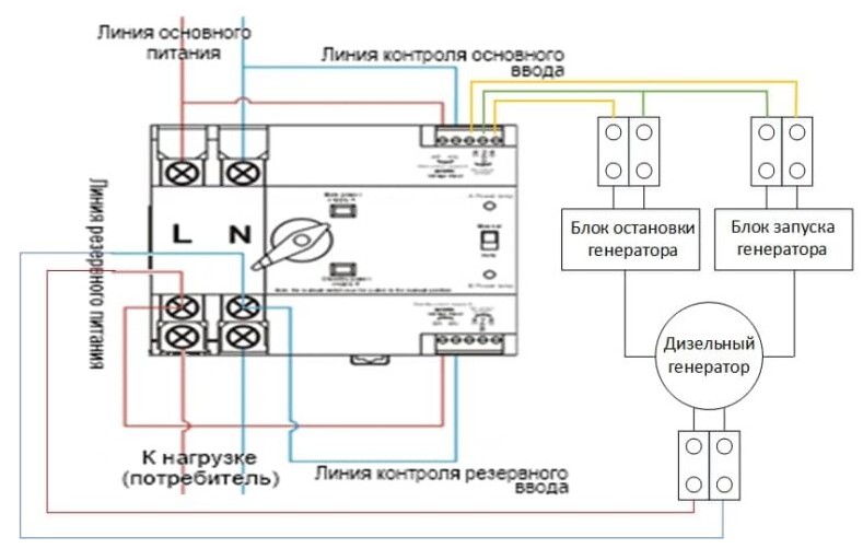 Двойной автоматический переключатель может автоматически переключиться на нормальный режим эксплуатации или резервное питание. При отключении электропитания на основной линии, устройство автоматически переключает нагрузку на резервную линию, а при возобновлении электропитания на основной линии возвращает нагрузку на основную линию.