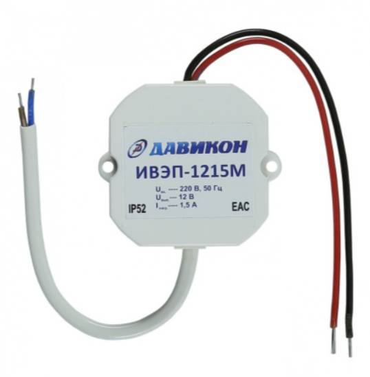 ИВЭП - 1215M - Источник вторичного электропитания предназначен для обеспечения электропитания потребителей при номинальном напряжении 12В постоянного тока и номинальном токе потребления: - ИВЭП-1215M до 1,5А.