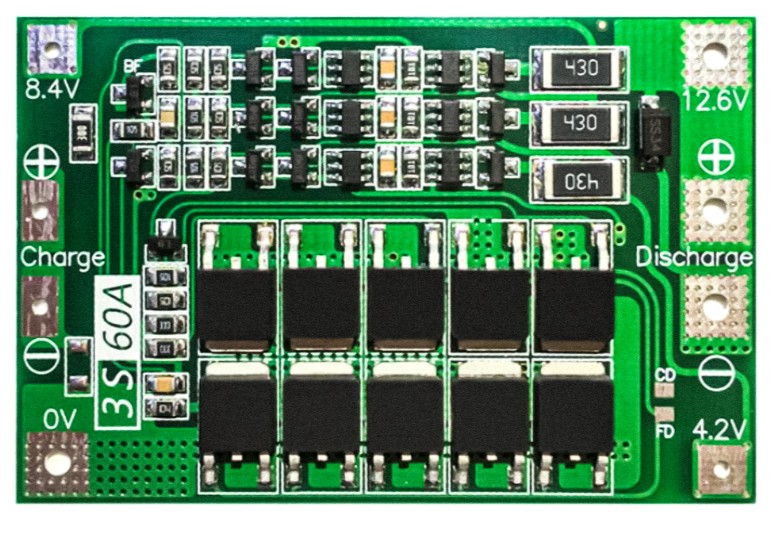 Плата защиты заряда литий-ионных аккумуляторов с балансиром 3S 60A