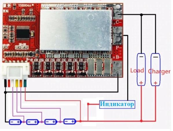 Плата защиты заряда LiFePo4 аккумуляторов с балансиром 4S 50A