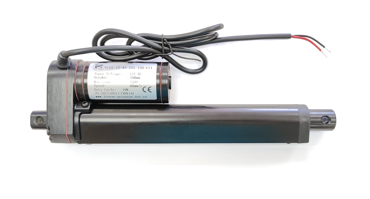 Линейный привод (актуатор) 12 В, длина хода 150 мм., 60 мм/с, до 15 кг (150N), черный