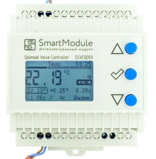 Контроллер электромагнитного клапана SSVC0059 — это комплект смонтированных печатных плат в корпусе, предназначен в качестве составной части других технических устройств для изготовления блока управления электромагнитным клапаном (нормально закрытым), работающим от сети переменного тока частотой 50 Гц, напряжением 230 В и током до 0,9 А. Контроллер позволяет управлять клапаном (в комплект не входит) по заданной программе и контролем температуры датчиком DS18B20 (датчик не входит в комплект), с возможностью оперативного изменения параметров.