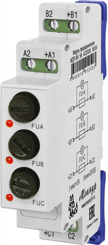 МДП-3М - на 3 предохранителя + индикация каждого (5А) АС250В или DС250В (при подключении на постоянный ток соблюсти полярность)
