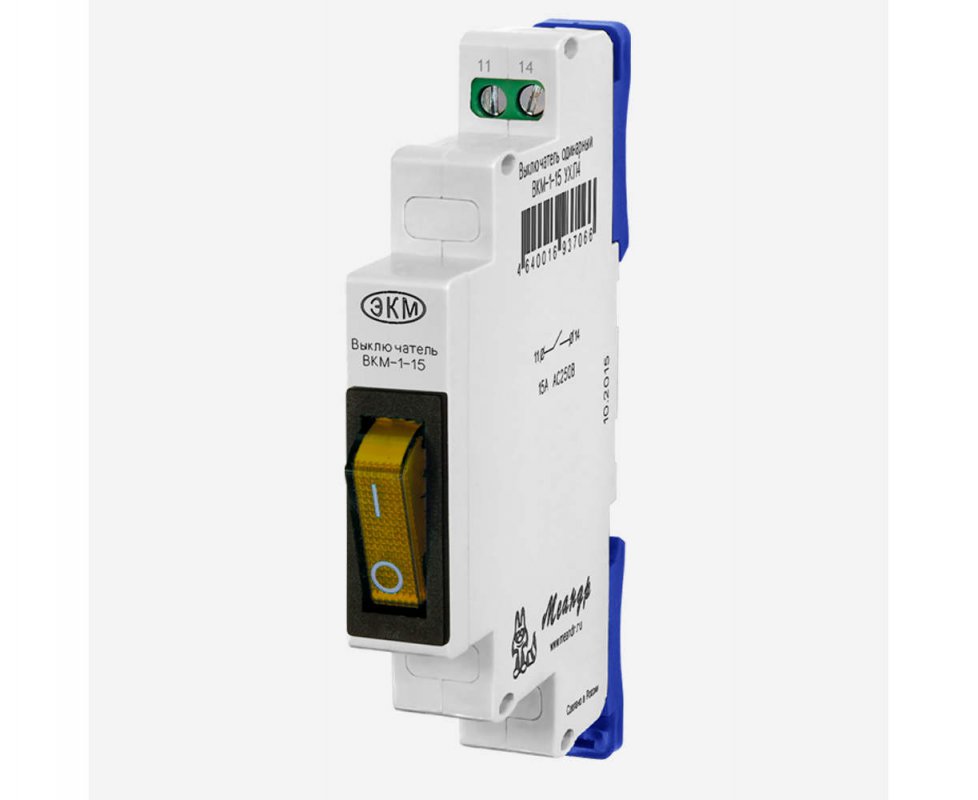 Выключатель одинарный на DIN-рейку ВКМ-1 желтый 15A AC250В УХЛ4