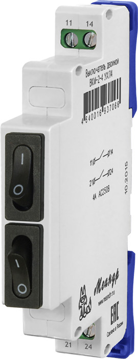 Выключатель двойной на DIN-рейку ВКМ-2 4A AC250В УХЛ4