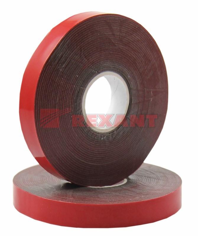 Двухсторонняя клейкая лента, красного цвета на серой основе, 12мм, 5метров REXANT