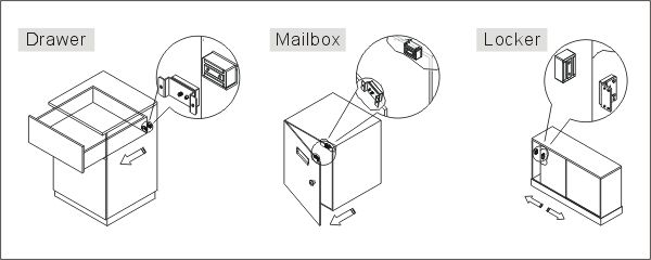 Электромагнитный замок. Сила удержания 80кг. Миниатюрные размеры: 60x38x25мм.