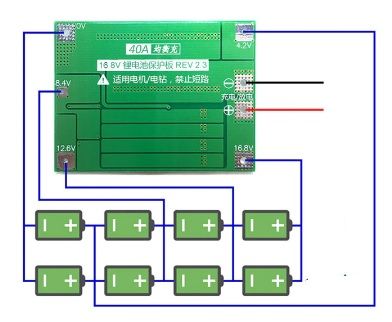 Плата защиты заряда литий-ионных аккумуляторов с балансиром 4S 40A