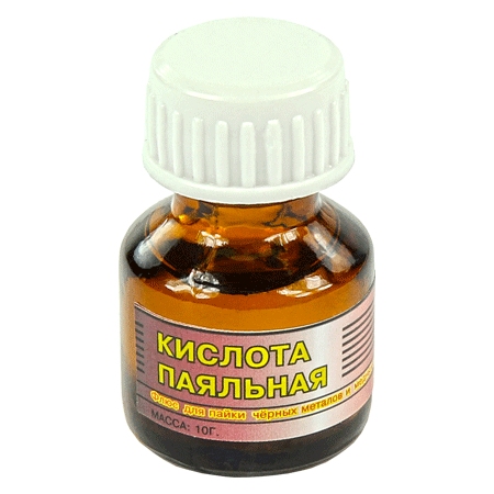 Флюс для пайки Кислота паяльная Connector КП-10С - высокоактивный флюс для пайки. Применяется для пайки углеродистых и низколегированных сталей, меди, никеля и их сплавов. Обладает высочайшими флюсующими свойствами. Остатки флюса имеют остаточную активность и со временем поверхность пайки закисает. Удаление остатков можно производить с помощью влажной тряпки, а лучше специальным средством "Удалитель флюса". Если удаление произвести своевременно, то пайки останутся блестящими. Тем не менее, не рекомендуется производить пайку радиосхем и печатных плат, так как остатки под деталями и в микротрещинах проводят электрический ток.