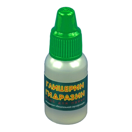 Глицерин гидразиновый флюс 10 мл Connector ГГ-10 предназначен для спайки закисших деталей, изъеденных коррозией контактов. Не рекомендуется для пайки печатных плат.
