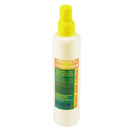 Флюс для пайки Кислота паяльная Connector КП-100 - высокоактивный флюс для пайки. Применяется для пайки углеродистых и низколегированных сталей, меди, никеля и их сплавов. Обладает высочайшими флюсующими свойствами. Остатки флюса имеют остаточную активность и со временем поверхность пайки закисает. Удаление остатков можно производить с помощью влажной тряпки, а лучше специальным средством "Удалитель флюса". Если удаление произвести своевременно, то пайки останутся блестящими. Тем не менее, не рекомендуется производить пайку радиосхем и печатных плат, так как остатки под деталями и в микротрещинах проводят электрический ток.