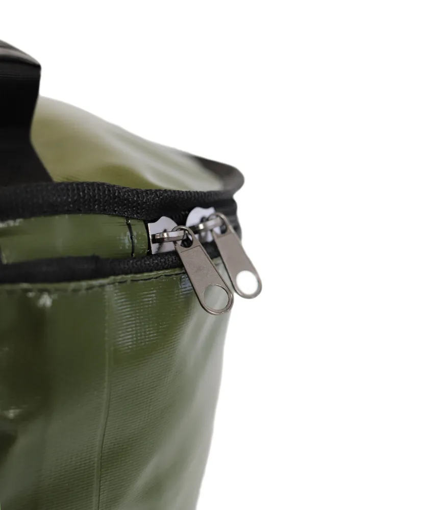 Замечательное многофункциональное ведро из ПВХ, предназначено как для замешивания прикормки, так и для перевоза и хранения рыбы, чистых и грязных вещей и не острых предметов. Очень удобно для транспортировки. Легко моется, оборудовано крышкой с молнией, что предохранит прикормку от высыхания. Водонепроницаемо. Вид застежки: крепкая молния.