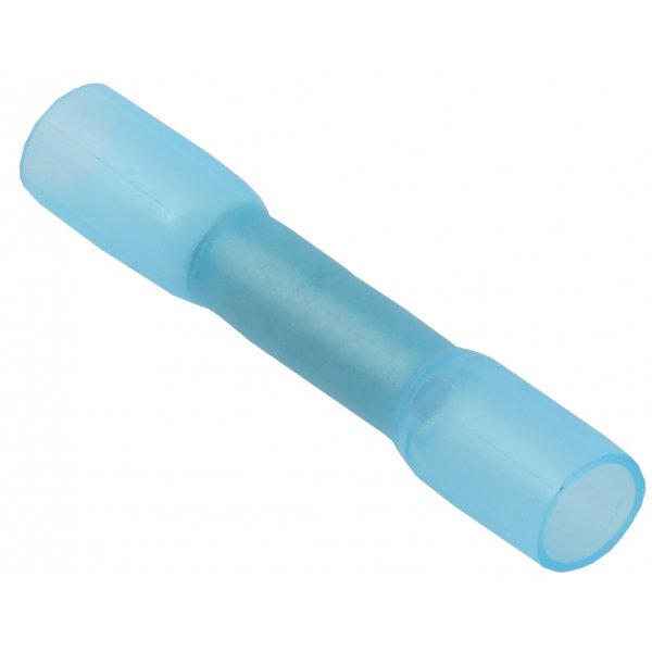 СОЕДИНИТЕЛЬНАЯ ГИЛЬЗА изолированная термоусаживаемая (СГИ-т L-37мм) 1.5-2.5мм² синий REXANT предназначена для качественного и быстрого соединения проводов между собой, а также герметичной изоляции места их соединения. Такая гильза используется для соединения многожильных медных проводов соответствующего диаметра при монтаже электрических контактных соединений на подвижном составе (автомобиле-, вагоно-, самолето- и судостроении) или в других местах, где важна надежность соединения (к примеру, радио- или климатическое оборудование). Изолированный термоусаживаемый соединитель REXANT состоит из двух компонентов: металлической бесшовной трубки и защитного изолятора, закрывающего коннектор полностью. Цельнотянутая металлическая трубка (контактная часть) изготовлена из латуни, с поверхностным электролитических лужением, имеет посередине ограничительную высечку, для равномерного заведения проводов с обеих сторон.