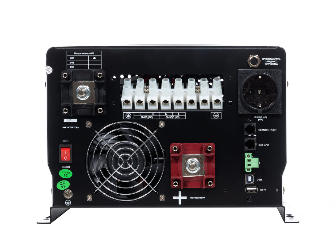 Мощное интеллектуальное трёхуровневое зарядное устройство имеет ШИМ контроллер и способно заряжать батареи в автоматическом режиме в 2 раза быстрее и эффективней, увеличивая срок их службы в 2-3 раза. Ручной выбор используемого типа батареи даёт возможность более гибко управлять программой заряда. ИБП имеет евро розетку и клеммную колодку, позволяющую подключить фазозависимый котёл отопления или резервный щит, и выполнен в настенном исполнении, что позволяет эффективно использовать пространство.