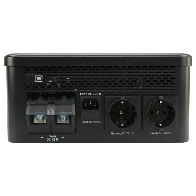 ИБП не имеет встроенного аккумулятора, рассчитан на подключение внешнего АКБ с большей емкостью, что обеспечивает большое время автономной работы.