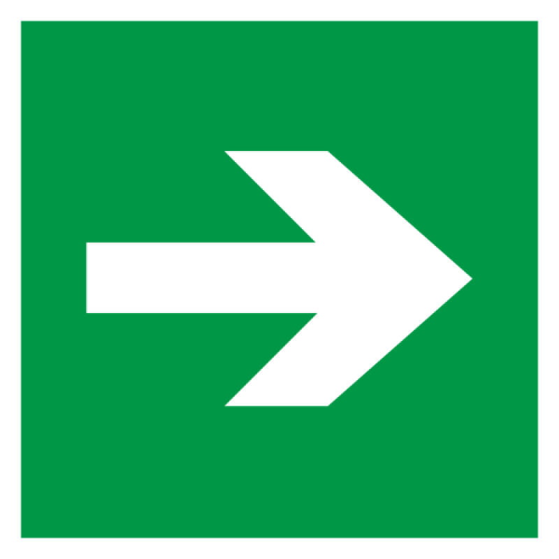 Знак безопасности, указывающий направление движения в чрезвычайной ситуации. ГОСТ Р 12.4.026-2001.