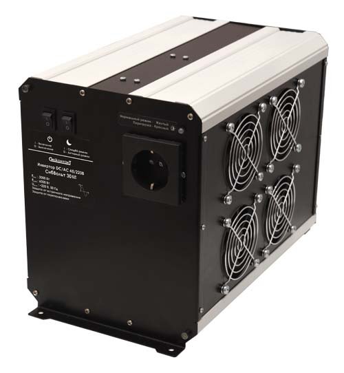 Инвертор СибВольт 3012 (преобразователь напряжения) преобразует постоянное напряжение аккумулятора 12 В в переменное синусоидальное напряжение 220 В и частотой 50 Гц. Качественные характеристики такого напряжения аналогичны характеристикам напряжения в бытовой сети.