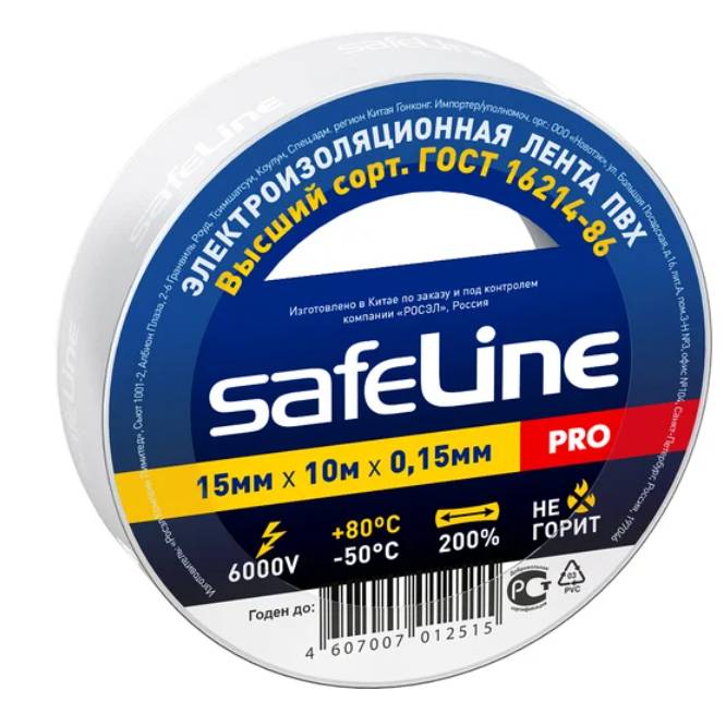 Изолента Safeline 15мм х 10м, 0.15 мм, белая