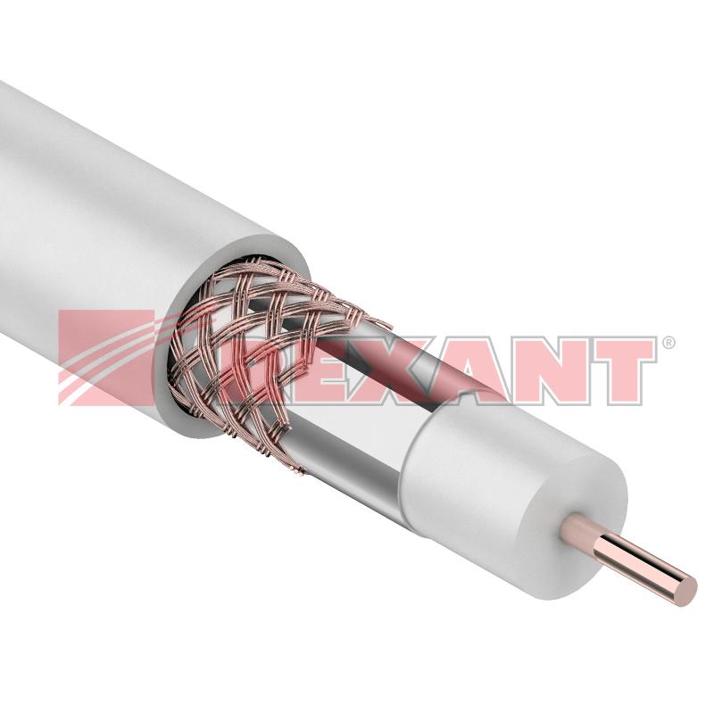 Кабель RG-6U+CU, (64%), 75 Ом, 100м., белый REXANT