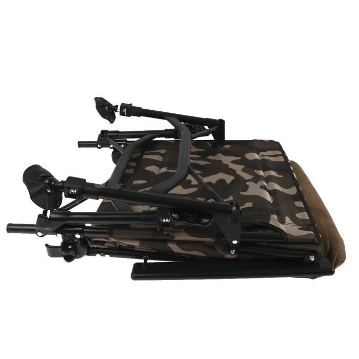 Комфортное, раскладное кресло, которое станет незаменимым атрибутом на рыбалке. Конструкция кресла весьма прочная, рама изготовлена из легкого, металлического сплава, синтетическая ткань спинки и сиденья — износоустойчивая (оливкового цвета), подлокотники выполнены из ударопрочного пластика. Используя выдвижные ножки телескопической конструкции можно быстро выставить нужный уровень сиденья независимо от места лова. В результате, кресло всегда будет стоять ровно — на наклонной дамбе, каменистом побережье или на склоне реки. Благодаря шарнирно прикрепленным к ножкам широким пяткам, кресло можно устанавливать даже на мягком грунте, ножки не будут в него проваливаться. Самозажимные фиксаторы надежно удерживают ножки в выдвинутом положении. Вдобавок, кресло способно трансформироваться в удобный лежак. Наклон спинки регулируется в широких пределах, что дает возможность выбрать оптимальное положение. В сложенном состоянии кресло занимает мало места. Кресло станет отличным выбором, как для фидера и поплавочной ловли, так и для отдыха на природе.