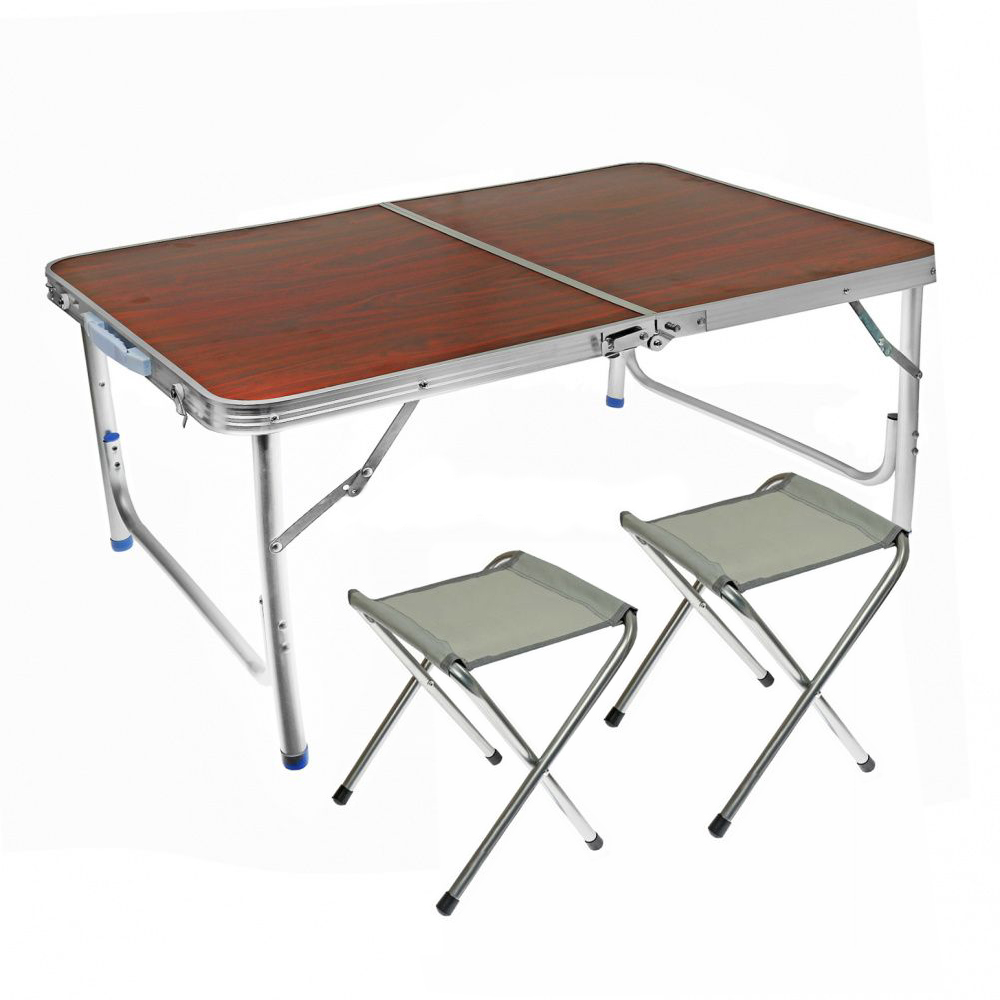 Туристический набор из из раскладного стола и двух походных стульев (табуретов) для отдыха на природе. Стол в сложенном состоянии превращается в чемодан с ручкой, стулья в походном состоянии помещаются внутри стола. Этот кемпинговый набор позволит вам отлично провести время.