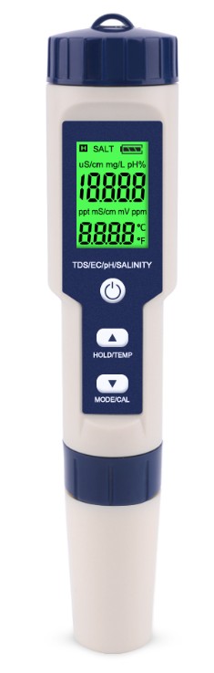 Портативный анализатор TDS, EC , pH, SALT и температуры жидкости EZ-9909SP