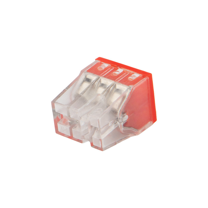 Компактный прозрачный корпус удобен для контроля соединения, а яркая цветовая разметка способствует визуальному различию клемм по количеству проводников.
