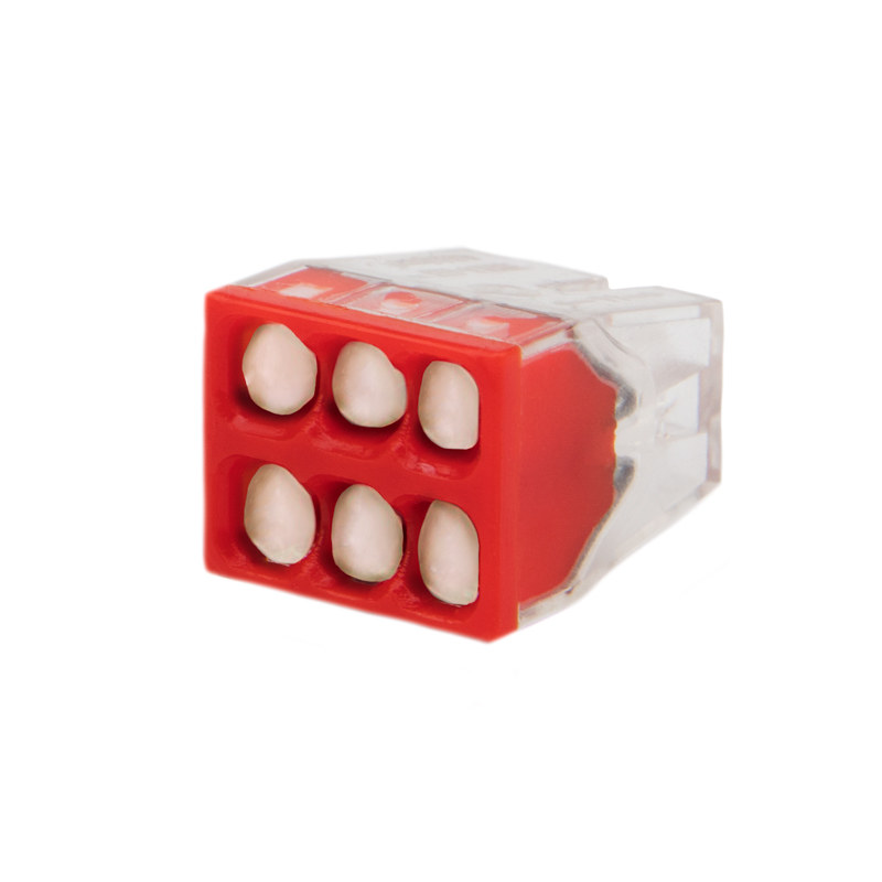 Компактный прозрачный корпус удобен для контроля соединения, а яркая цветовая разметка способствует визуальному различию клемм по количеству проводников.